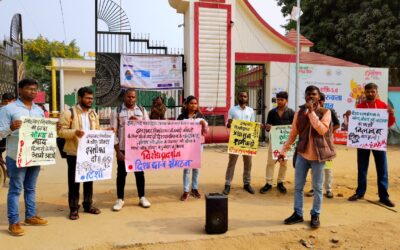 गोरखपुर: दिशा छात्र संगठन गोरखपुर विश्वविद्यालय इकाई की तरफ़ से आज इलाहाबाद विश्वविद्यालय में इस संगठन से जुड़े चार छात्रों सौम्या, चन्द्रप्रकाश, संजय, निधि के निलम्बन के ख़िलाफ़ गोरखपुर विश्वविद्यालय के मेन गेट पर विरोध प्रदर्शन किया है. प्रदर्शन के दौरान संगठन के सदस्य आकाश ने कहा कि आज पूरे देश में सभी विश्वविद्यालयों में…