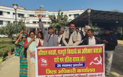संविधान दिवस के मौके पर ट्रेड यूनियनों के राष्ट्रव्यापी आह्वान के तहत देशभर में चल रहे विरोध कार्यक्रमों के समर्थन में भाकपा (माले) गोरखपुर जिला इकाई ने आज जिलाधिकारी कार्यालय के समक्ष प्रदर्शन किया. इसके बाद राष्ट्रपति भारत सरकार को संबोधित ज्ञापन जिलाधिकारी के माध्यम से सौंपा गया. भाकपा-माले के जिला सचिव राकेश सिंह ने…
