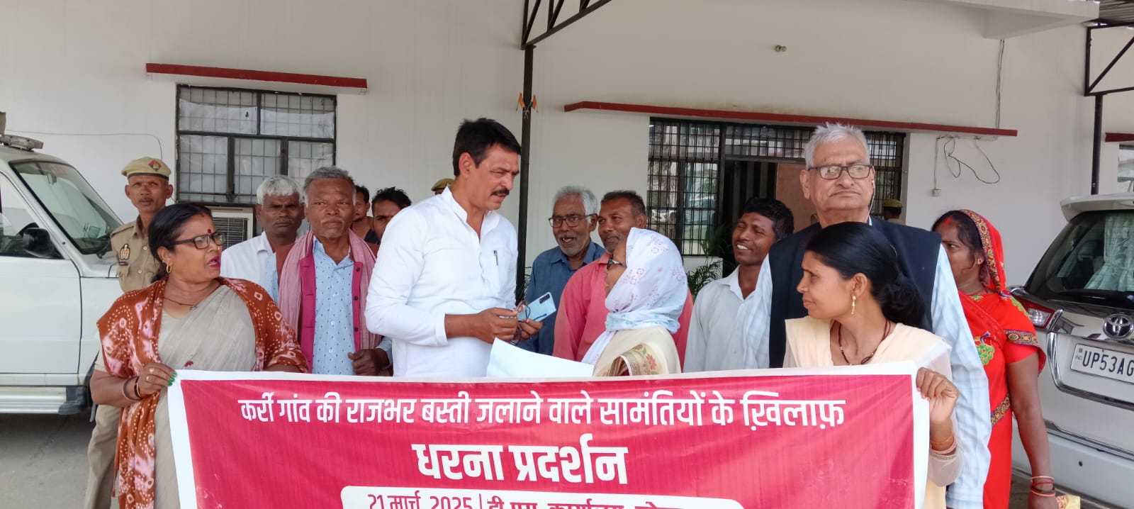 संत कबीर नगर के कर्री गांव में राजभर परिवारों के घर जलाने वाली सामंती ताकतों के विरुद्ध लोहा लेते हुए कम्युनिस्ट पार्टी (मार्क्सवादी-लेनिनवाद) भाकपा-माले के कार्यकर्ता गोरखपुर के श्रम विभाग कार्यालय पर एकत्रित हो कर डीएम कार्यालय पहुँचे. राजभर परिवारों के घर जलाने वालों के विरुद्ध मुख्यमंत्री को संबोधित ज्ञापन जिलाधिकारी कार्यालय पर प्रदर्शन करते…