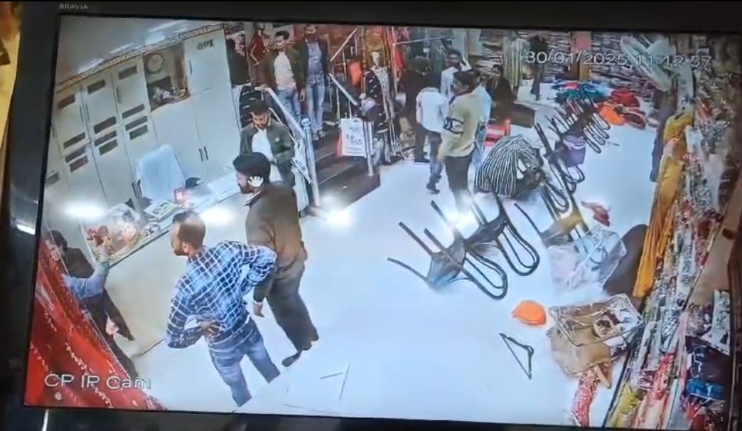 रेती चौक स्थित कपड़ा शोरूम पर दर्जनों लोगों ने जमकर की तोड़फोड़ और मारपीट