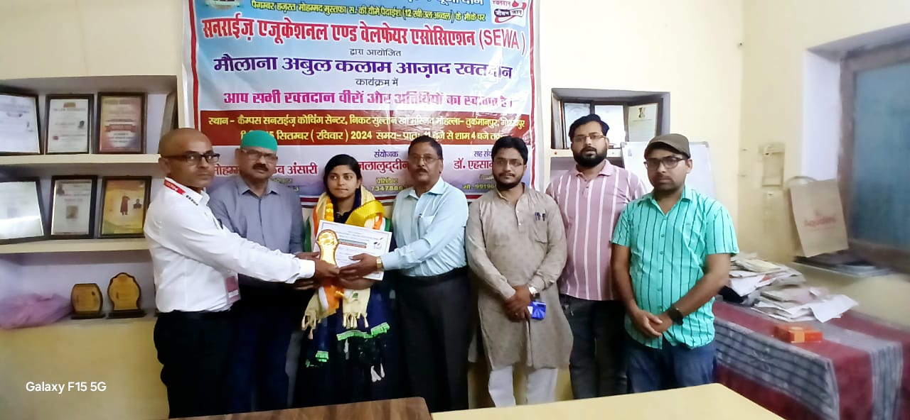 CBSE बोर्ड परीक्षा में 95% होल्डर पूर्व छात्रा अर्शी फात्मा का सनराईज़ कोचिंग सेंटर एवं एम. ए. एकेडमी शिक्षण संस्थान ने किया भव्य स्वागत