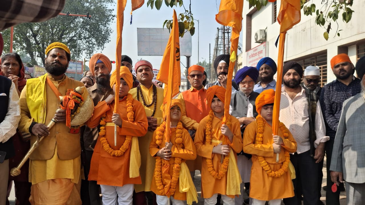 सभी धर्म वर्ग को पूरे रास्ते गुरु का कीर्तन गायन करते हुए चार साहबजादों के वेष में निशान साहिब थामे बच्चों के पीछे चल रहे थे.